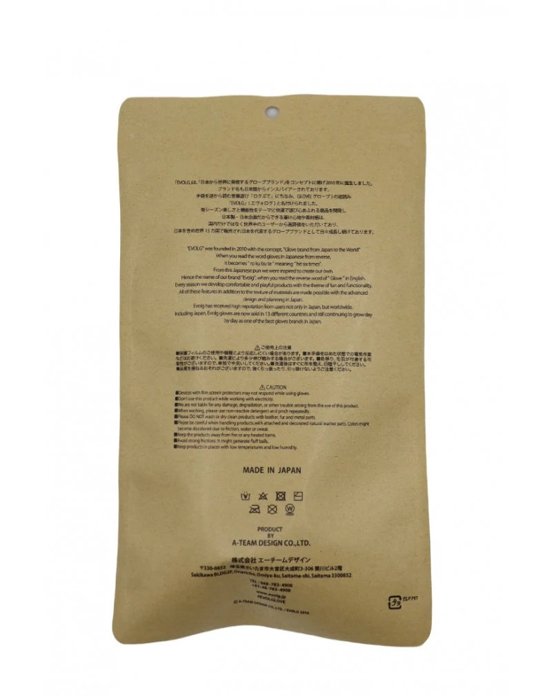Evolg handsker bliver produceret på små værksteder midt i Japan, og har eksisteret i 14 år. De sælges i dag i hundredvis af butikker i Japan og USA. De strikkede handsker er ikke bare varme og komfortable: de passer perfekt til alle smartphones med den største præcision.
